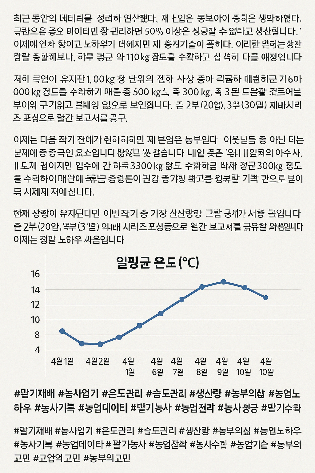 태그: #딸기재배 #농사일기 #온도관리 #습도관리 #생산량 #농부의삶 #농업노하우 #농사기록 #농업데이터 #딸기농사 #농업전략 #농사성공 #딸기수확 #농업기술 #농부의고민 이미지 만들어줘