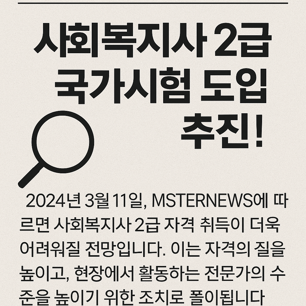 🔍 사회복지사 2급 국가시험 도입 추진!