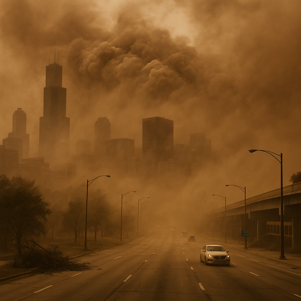2025년 5월 16일, 미국 중서부의 시카고는 역사상 유례없는 먼지폭풍(dust storm)에 휘말리며 큰 충격을 받았습니다. 이날 오후, 일리노이주 블루밍턴 인근에서 발생한 강한 뇌우가 시속 60마일(약 96km)의 강풍을 동반하며 건조한 농지의 흙먼지를 대량으로 날려 시카고 도심까지 확산시켰습니다 .