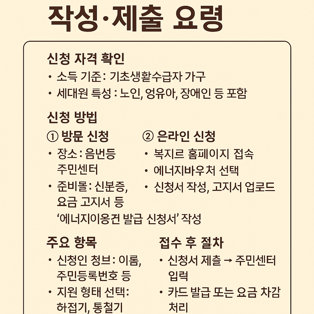 #에너지바우처신청방법 #2025에너지바우처 #정부지원금 #여름전기요금지원 #동절기에너지지원 #복지로신청방법 #에너지바우처대상자 #에너지바우처신청기간 #기초생활수급자혜택 #국민행복카드 #전기요금할인 #도시가스지원 #저소득층지원금 #에너지비용지원제도 #주민센터신청서 #요금차감방식 #에너지바우처자격요건 #복지혜택정보 #2025정부복지정책 #에너지복지