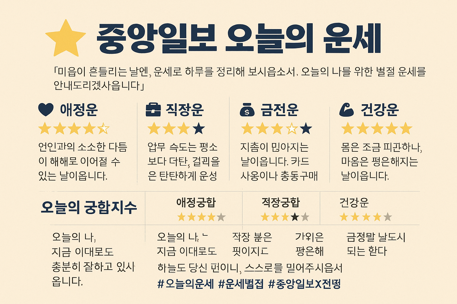 #오늘의운세 #운세별점 #중앙일보x천명 #애정운세 #직장운세 #금전운세 #건강운세 #별점운세 #하루의시작 #마음의쉼표